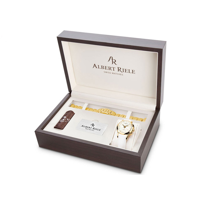 ساعت مچی عقربهای زنانهی «آلبرت ریله» (Albert Riele) مدل «LQ03-SY99D-TW-K1513» از ساعتهای بسیار شیک و لوکس این برند سوییسی است. این ساعت کلاسیک، ویژگیهای جذاب و البته کارآمدی دارد که زیبایی ساعت را دوچندان کرده است. یکی از این ویژگیها کرنوگراف یا زمانسنج است که با دو کلید سمت راست کنترل میشود و به موجب آن دو شمارشگر روی صفحه تعبیه شده است. ویژگی دیگر این ساعت بهره بردن از قابلیت سرعت سنج (تاکي متر) است. تاریخشمار هم دیگر قابلیتی است که در کنار زیبایی، کارایی بسیاری دارد و شمارهی روزِ ماه را روی صفحهی صدفی ساعت و در موقعیت عدد چهار به تصویر میکشد.
